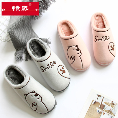 Kuailu mùa thu và mùa đông bông dép gói về nhà với không trượt nữ nặng đáy để nam nội thất dép mùa đông nhà ấm áp - Trang chủ dep long mang trong nha Trang chủ