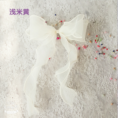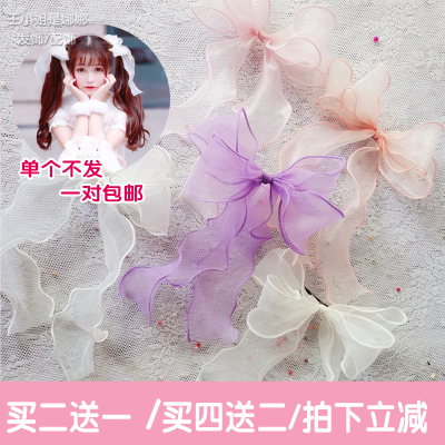 Lắc lưới phong lan đỏ vàng trẻ trung với những sợi tuyết ruy băng nơ đôi dễ thương kiểu tóc đuôi ngựa kẹp tóc vòng tóc phụ kiện mũ - Phụ kiện tóc trâm cài cổ trang