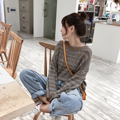 Lei Lei Ting Phiên bản tiếng Hàn mới của chiếc áo len nhỏ tươi sang trọng lỏng lẻo của phụ nữ đầu áo len sọc ngọt ngào - Đan Cardigan áo len gile Đan Cardigan