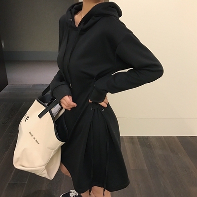 LGGJDJDZ chic gió đầu mùa thu váy nữ trùm đầu băng dài thiết kế máy cảm giác một từ váy nữ đầm suông chữ a A-Line Váy