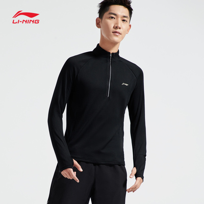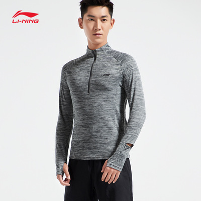 Li Ning áo thun dài tay nam mới chạy loạt áo cổ tròn nam thể thao mùa thu và mùa đông dệt kim ATLN147 áo thun tay dài nam the thao Áo phông thể thao