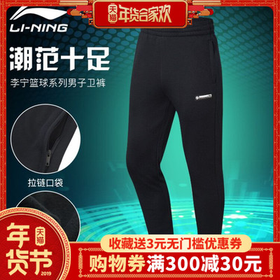 Li Ning cộng với quần bó sát nhung nam 2018 mới ấm dày đóng cửa quần dài thu đông và chân váy dậm chân quần quần thể thao 3 sọc Quần thể thao