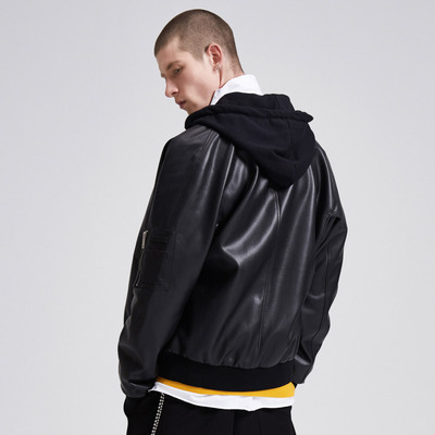 Lilbetter nam da PU khâu da áo khoác mùa thu ngắn áo khoác phi công xe máy nam LB áo khoác jean