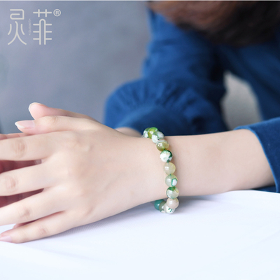 Ling Fei xanh anh đào vòng tay mã não một điều một hình băng loại nổi chalcedony vòng tròn đơn tinh thể màu xanh lá cây nam và nữ vòng tay
