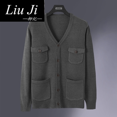 Liu Ji mùa xuân áo len dày áo len đan len xu hướng Hàn Quốc bên ngoài mặc áo len giản dị túi quần áo nam - Cardigan áo len nam