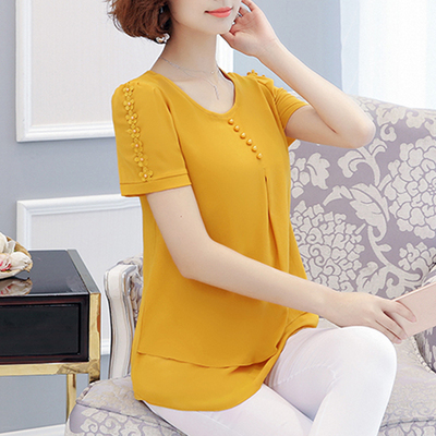 Lỏng t- shirt phụ nữ sang trọng ngắn tay cơ sở kích thước lớn áo sơ mi nhỏ trong phần dài của phiên bản Hàn Quốc của trang bìa bụng hoang dã chiffon quần áo áo phông rộng nữ