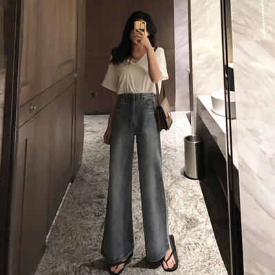 Lỏng v-cổ halter T-Shirt retro thẳng chân chân rộng jeans jeans phong cách tính khí new chic phù hợp với váy nữ