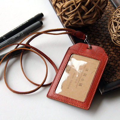 Lớp đầu tiên của da hướng dẫn sử dụng giấy phép làm việc bộ treo cổ tài liệu thiết lập da dây buộc huy hiệu thẻ kiểm soát truy cập bộ thẻ phù hiệu da ví đựng thẻ atm có nút đẩy thẻ
