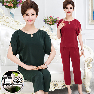 Lụa phù hợp với nữ thời trang hai mảnh 2018 mùa hè mới tính khí trung niên mẹ lụa nặng lụa giản dị phù hợp với mẫu váy liền cho tuổi 40 Quần áo của mẹ