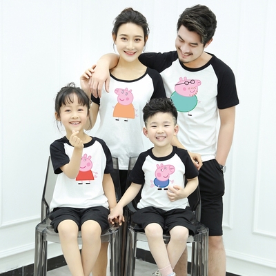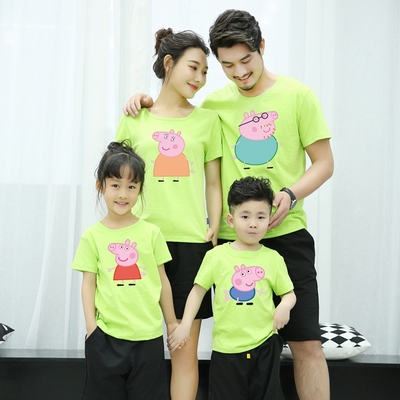 Lưới đỏ cha mẹ và con mẹ chồng một gia đình ba con heo nhỏ bốn cái áo phông ngắn tay áo dài mùa hè gia đình đặt ga ngoại - Trang phục dành cho cha mẹ và con quần áo em bé