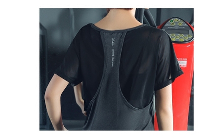 Lưới vẻ đẹp trở lại yoga quần áo chạy t-shirt thể thao ngắn tay khô nhanh t-shirt áo sơ mi nữ tập thể dục nửa tay áo loose áo thun thể thao nam chính hãng Áo phông thể thao