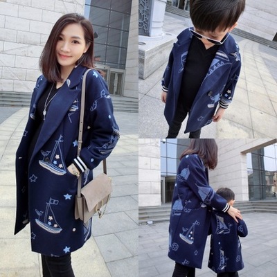 LUSON Mom Mẹ-con mặc áo con trai lớn thêu áo thêu quần áo trẻ em áo dài quần áo gia đình