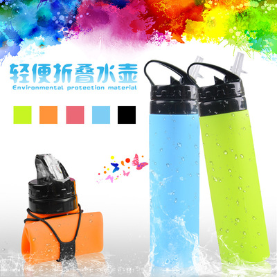 Ly uống ngoài trời 600ML dung tích lớn silicone gấp cốc trẻ em kính thiên văn thể thao cầm tay nữ bình nước thể thao nike Ketles thể thao