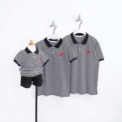 Mặc khác nhau giữa cha mẹ và con mùa hè 2019 Trẻ em mới mặc sọc Hàn Quốc của ba gia đình được trang bị áo thun thẻ thủy triều - Trang phục dành cho cha mẹ và con thời trang gia đình Trang phục dành cho cha mẹ và con