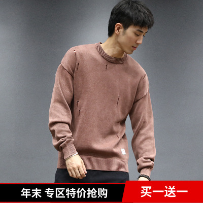 Macheda mùa thu và mùa đông áo len lỗ Nhật Bản retro rắn tròn cổ áo len lỏng lẻo len len đáy áo sơ mi nam áo len nam