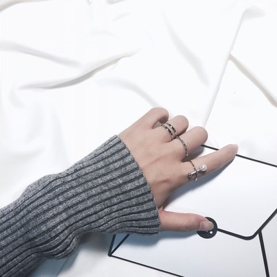 Màu đỏ hoang dã với vòng ngọc trai rỗng kết hợp nữ thủy triều Nhật Bản và Hàn Quốc tối giản gió J015 nhẫn cặp bạc Nhẫn