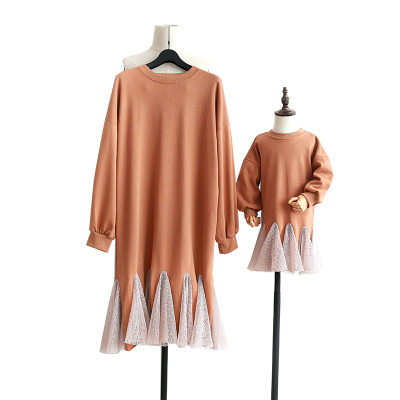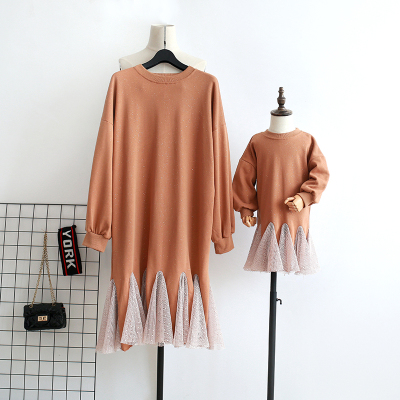 Màu đỏ lưới cùng gia đình vừa vặn thu đông 2018 mới thủy triều mẹ nữ thời trang đầm đầm xòe áo trẻ em