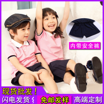 Mẫu giáo quần áo mùa hè bông màu hồng giáo viên cậu bé trẻ em đồng phục học sinh tùy chỉnh trường tiểu học thể thao lớp quần áo phù hợp với quần áo em bé