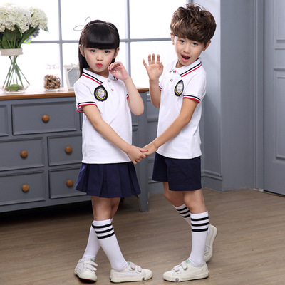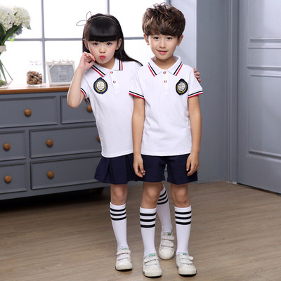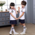 Mẫu giáo quần áo mùa hè ngắn tay phù hợp với đồng phục học sinh tiểu học Cao Đẳng Anh gió mùa hè trẻ em của lớp dịch vụ mô hình tùy chỉnh đồng phục học sinh tiểu học