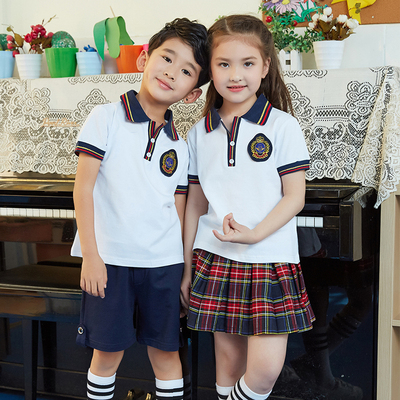 Mẫu giáo vườn ăn mặc mùa hè bông đồng phục học sinh phù hợp với gió Anh học sinh ngắn tay trẻ em mùa hè của lớp dịch vụ tùy chỉnh áo đồng phục bóng chày