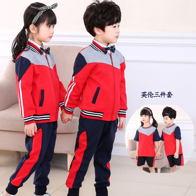 Mẫu giáo vườn dịch vụ học sinh mùa hè đồng phục học sinh mùa xuân và mùa thu nạp bông Người Anh ba mảnh thể thao trẻ em lớp dịch vụ tùy chỉnh đồ trẻ em Đồng phục trường học / tùy chỉnh thực hiện