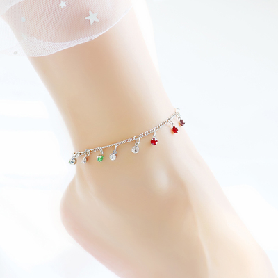 Màu kim cương vòng chân kim cương của bạn gái bạn gái phụ kiện đơn giản sinh viên tươi chân chuỗi trang sức gợi cảm Sen hoang dã lắc chân nam Vòng chân