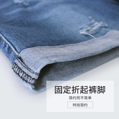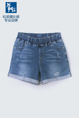 Màu nâu vàng chính hãng đàn hồi eo quần short denim nữ 18 mùa hè bông đàn hồi lỗ giản dị mỏng Hàn Quốc phiên bản của kích thước lớn chất béo mm quần short bò