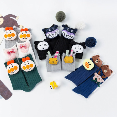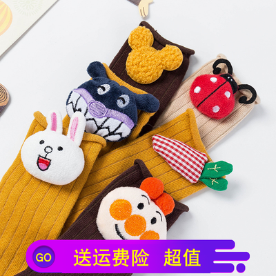 Màu rắn dễ thương cao stereo bé trai và bé gái mùa xuân hè mùa thu và mùa đông cotton dài vớ vớ công chúa vớ búp bê - Vớ tất chống trơn cho bé