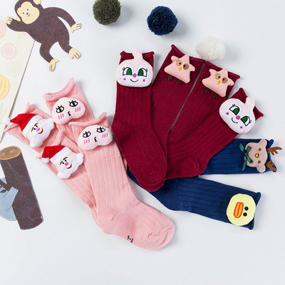 Màu rắn dễ thương cao stereo bé trai và bé gái mùa xuân hè mùa thu và mùa đông cotton dài vớ vớ công chúa vớ búp bê - Vớ tất chống trơn cho bé Vớ