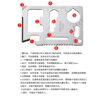 Máy cầm tay di động cắt thẻ đa năng công cụ thẻ du lịch ngoài trời quân đội Thụy Sĩ thẻ dao thép không gỉ cắm trại thẻ cứu hộ dao xếp bỏ túi