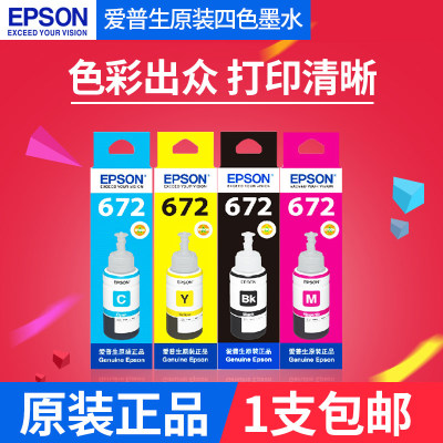 Máy in Epson 672 mực nguyên bản T6721 màu bốn màu 4 màu mực T6721L455L301L 310L360L351L380L383L130L1300L565L405L363 - Mực mực in uv