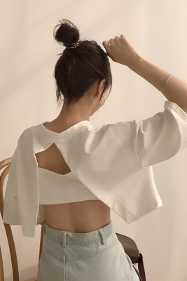 Máy tim Học sinh hàng đầu Hàn Quốc thắt lưng mùa hè eo phụ nữ gợi cảm rò rỉ rốn làm đẹp lưng áo thun ngắn tay - Áo phông áo phông gucci nữ