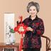 Mẹ mùa thu bông vải to sợi bông áo sơ mi áo bông mỏng áo người già mùa đông kích thước lớn áo sơ mi cardigan phụ nữ áo kiểu tuổi 60 Quần áo của mẹ