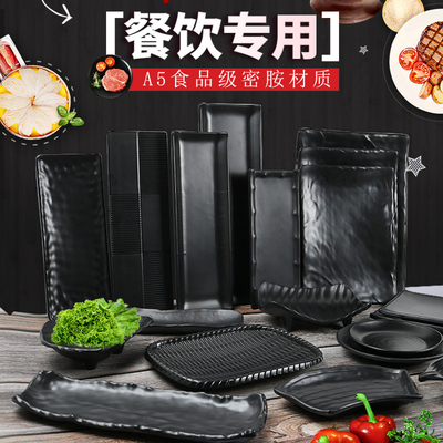Melamine cửa hàng thịt nướng tấm đặc biệt hình chữ nhật màu đen sáng tạo tấm nhựa món ăn nồi lẩu bộ đồ ăn tấm thương mại - Đồ ăn tối dĩa inox Đồ ăn tối