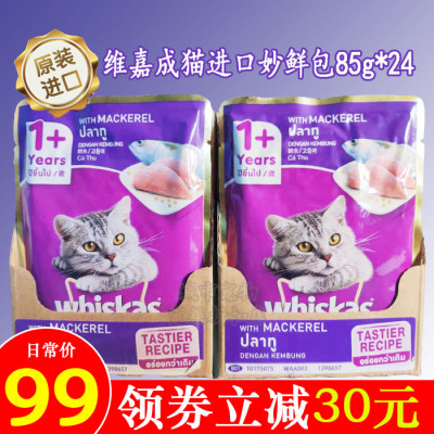 Mèo nhập khẩu nguyên bản Wei Jia Cheng gói tươi tuyệt vời 85g * 24 túi mèo ăn nhẹ mèo thức ăn ướt vào thức ăn cho mèo hạt mực - Đồ ăn nhẹ cho mèo thức ăn cho mèo mẹ mới đẻ Đồ ăn nhẹ cho mèo