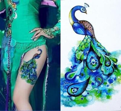 Miễn phí đăng dán nữ không thấm nước hình xăm màu xanh phượng cánh tay hoa chân dán sơn cơ thể mua hai tặng một miễn phí hình xăm dán kín lưng Vẽ trên cơ thể