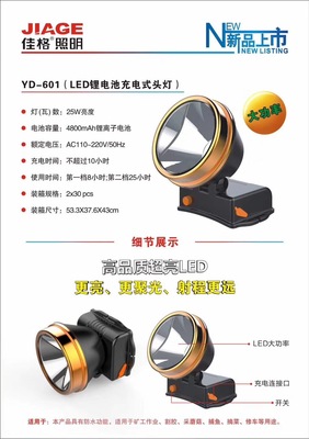 Miễn phí vận chuyển!佳 格 LED chói đầu gắn trên có thể sạc lại câu cá ánh sáng ngoài trời đèn pha đèn pin YD-619 đèn pin siêu sáng chiếu xa 1500m Đèn ngoài trời
