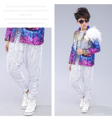Mô hình mới trình diễn catwalk trang phục harem quần quần trẻ em đường phố nhảy sân khấu biểu diễn hợp xướng phù hợp với chàng trai sequin - Trang phục các hãng quần áo trẻ em