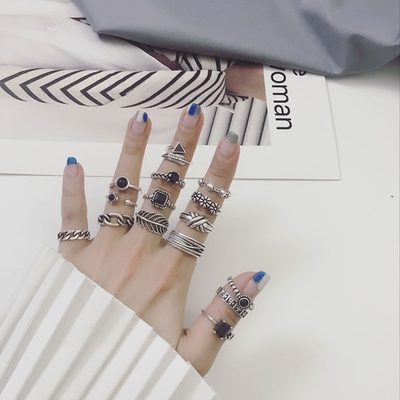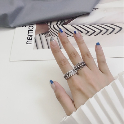 Mô hình thiết kế Hàn Quốc Nhẫn bạc Thái nữ retro nhiều lớp quanh co ngón trỏ mở người thủy triều với cá tính nam nữ nhẫn - Nhẫn nhẫn kim tiền