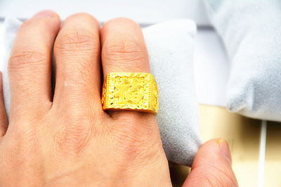 Mô phỏng nhân vật vàng ban phước cho nhẫn nam nhẫn vàng nam mạ vàng đồng xu trang sức độc đoán nhẫn không phai nhẫn vàng tây