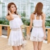Mới của Hàn Quốc phiên bản của chia áo tắm nữ cảm giác màu rắn ren vòng cổ khí góc phẳng nhỏ tươi kỳ nghỉ bên bờ biển áo tắm đồ bơi 2 mảnh trẻ em