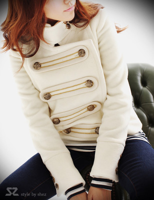 Mới mùa thu và mùa đông áo len nữ Hàn Quốc phiên bản của tự trồng đứng cổ áo retro phong cách tòa ngắn đôi ngực áo len áo khoác dạ nữ ngắn