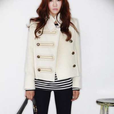 Mới mùa thu và mùa đông áo len nữ Hàn Quốc phiên bản của tự trồng đứng cổ áo retro phong cách tòa ngắn đôi ngực áo len áo khoác dạ nữ ngắn Áo khoác ngắn
