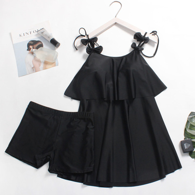Mỏng màu đen chia áo tắm nữ bao phủ bụng bảo thủ góc phẳng tươi nữ kích thước lớn suối nước nóng đồ bơi 2 mảnh trẻ em