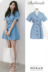 MORAN Hàn Quốc chic retro phong cách phù hợp với cổ áo đơn ngực sọc áo váy eo Một từ váy ngắn 2018 mùa hè đầm dạ hội
