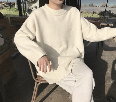 Một chiếc áo len cổ tròn và màu trắng có cổ gạo trắng kiểu dáng áo len nam mùa thu và mùa đông mới áo da nam Kéo qua