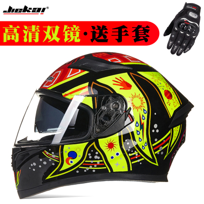Mũ bảo hiểm xe máy JIEKAI bốn mùa cưỡi mũ bảo hiểm đầy đủ ống kính đôi mũ bảo hiểm xuyên nắng nam và nữ mũ bảo hiểm - Xe máy Rider thiết bị băng bảo vệ khớp gối Xe máy Rider thiết bị