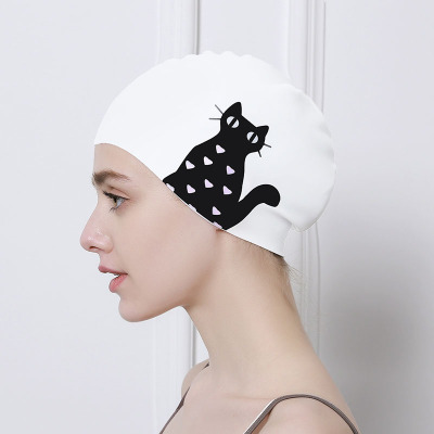 Mũ bơi nữ tóc dài không thấm nước silicone mũ bơi thời trang dễ thương Earmuffs không đầu người lớn phim hoạt hình thiết bị bơi - Mũ bơi mũ bơi silicon cao cấp