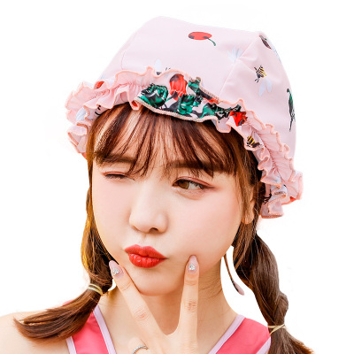 Mũ bơi nữ tóc dài Thời trang Hàn Quốc dễ thương không thấm nước bảo vệ tai thiết bị bơi người lớn trẻ em hoạt hình vải bơi mũ - Mũ bơi mũ hồ bơi Mũ bơi