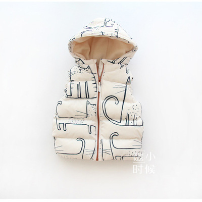 Mùa đông 2017 bé gái mới ra quần áo vest dày không tay trùm đầu in áo vest trẻ em áo phao cho bé gái Áo ghi lê